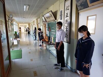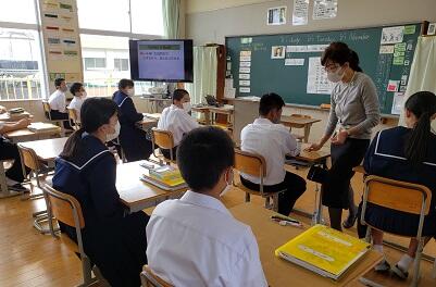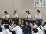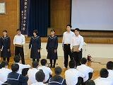 今回の指導は、妻高校より2名の先生と情報ビジネスフロンティア科の3年生4名に来ていただきました。先生方から、コミュニケーションの大切さや、マナーについて教えていただき、9年生にとって、進路目標の達成に向けてとても充実した時間となりました。