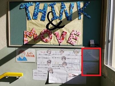 給食室前のお知らせコーナー。