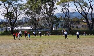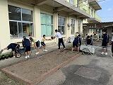 昼休みは、2年生が担任の先生と缶けりをしていました。
