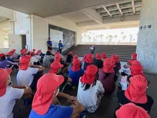 「健康寿命」や「ロコモティブシンドローム」という言葉をキーワードに、成長期の時期から運動不足にならないことや、体を柔らかくすることなどが大切であることを学びました。また、ケガをしたときの様々な症状や、応急処置の仕方なども教えていただきました。