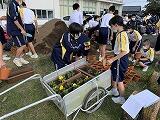 5年生が、自分たちで育てたお米を炊きました。みそ汁も作りました。
