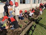 耕されたばかりのふかふかの土の感触を楽しみながら、丁寧にまきました。