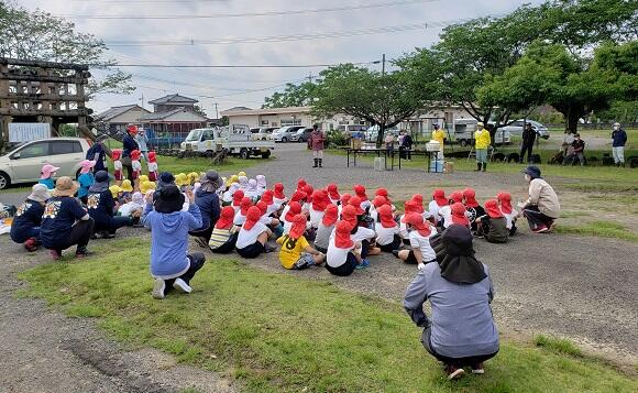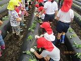 サツマイモの植え付けをしました。保育園のみなさんも一緒です。