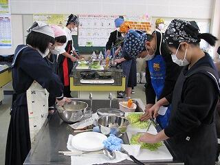 県立高校推薦入試を終えてほっと一息の中学3年生が、調理実習を楽しみました。