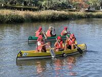 子どもたちは、フィールドアスレチックにチャレンジ中です。