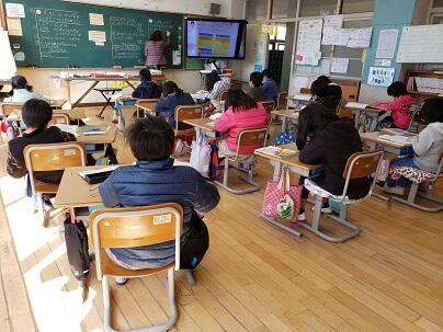 背中が物語る成長の2年生。先生の板書に集中してしっかり聞いていました。