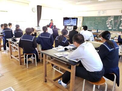 9年生は理科。テレビからアームストロングの「人間にとっては小さな一歩だが人類にとっては偉大な一歩だ」という名言が流れてきました。1日の積み重ねが、君たちの未来を作り上げていくのです。夢に向かって歩を進めよう。9年生がんばれ!