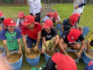 6月1日(月)に引き続き、6月8日(月)は、バケツに稲の苗を植えました。