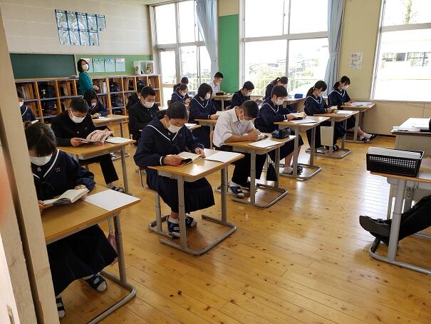 音楽を合図に教室に戻り、黙想。そして、静寂の中での朝読。