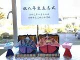 14歳になる年を迎えた8年生が立志の誓いを立てました。誓いの思いを一字で表した色紙を手に持ち、堂々と自分の思いを伝えました。
