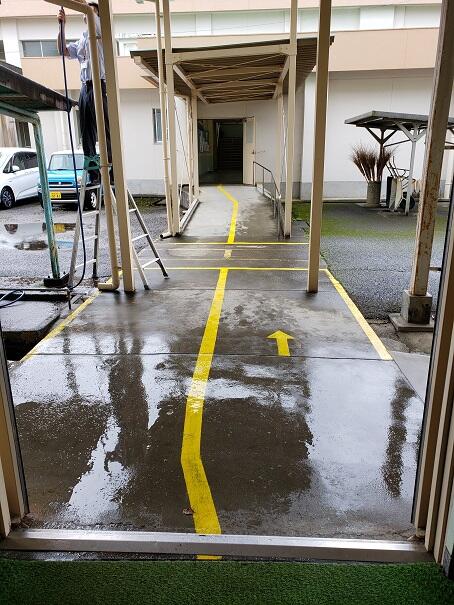 渡り廊下が水浸しだったので校舎のひさしを見ると
