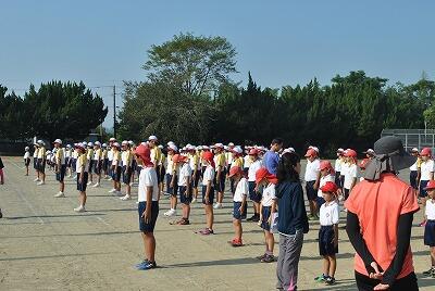 8月30日(水)、小中合同の運動会の練習がありました。いよいよ9月17日(日)の本番に向けて始動です。団長のかけ声とともに立つ、座る、整列の練習をしたああと、行進の練習もしました。子どもたちは元気な返事とかけ声とともに真剣に取り組んでいました。終了後、選挙啓発ポスター用の集合写真を撮りました。みんな笑顔で撮影に臨んでいました。