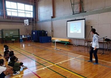 小学部では、NTTドコモに協力いただいて、スマホ・ケータイ安全教室を行いました。福岡のスタジオとオンラインでつないで、1・2年、3・4年、5・6年の3つに分けて、発達段階に応じた内容を組みました。