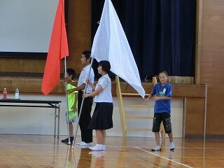 その後、団長・副団長・団顧問の紹介ののち、競技を行い、団色が決定しまし、団旗が団長に授与されました。