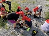 協力しながら心を込めて苗植えをする子供たちの姿をご覧ください。