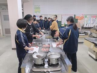 保護者の方に協力をいただいて、中学3年生が合格うどんを食べました。