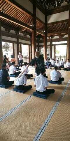 光雲寺では、座禅の体験をさせてもらいました。光雲寺は、禅の修行をする場として建立されたそうです。座禅体験で叩いていただくのは希望でしたが、多くの人が僧侶に叩いてもらっていました。最後に「洗心」という言葉を説明していただき、身も心も一新できた気がします。