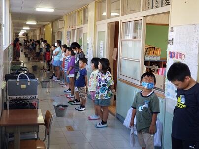 1年生の図工の作品が仕上がったようです。「できました」「見てください」と