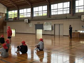 お互いのグループの集団行動を見て、感想を言っている場面でした。