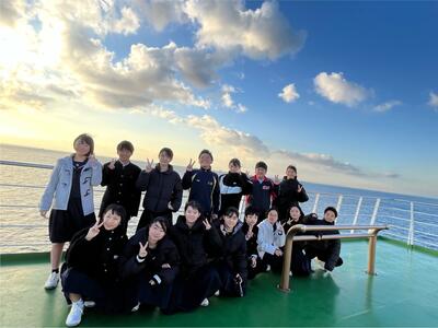 みんな食事することもでき、元気です。食事の後には、フェリーの展望デッキに出て写真を撮ったり景色を眺めたりしていました。みんな、とってもいい笑顔です。