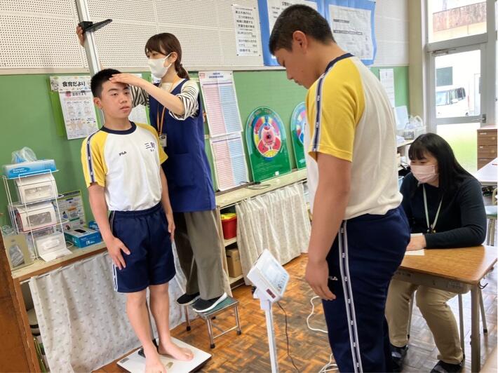 今週実施している身体計測は順調に進んでいます。中学生は手際も良くなり、昨年よりも短い時間で終わりました。