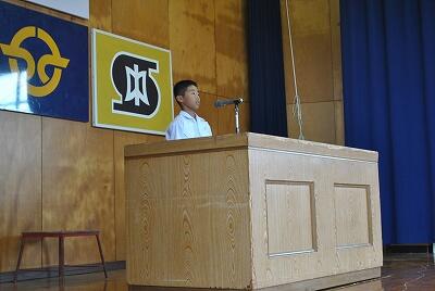 7月20日(木)、第1学期の終業式が行われました。代表の児童生徒が、1学期の振り返りと2学期の目標について発表し、校長先生から「感謝と祈りと闘争本能」についての具体的なお話がありました。いよいよ明日からは、夏休みです。「自分の命は自分で守る」ことをしっかり心に留め置いて、有意義な夏休みにしてほしいです。