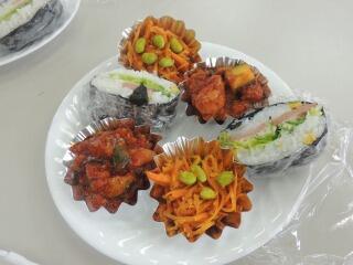 メニューは「おにぎらず」「カラフル卵焼き」「鶏肉と夏野菜のトマトソース煮」「にんじんのきんぴら」でした。