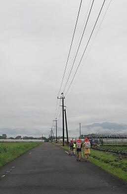 朝の街頭指導を終えて学校へ向かう途中に出会った登校班の様子です。