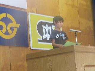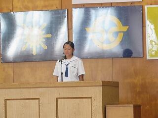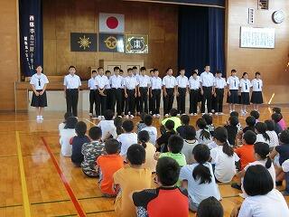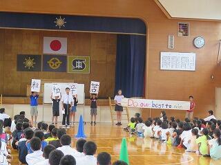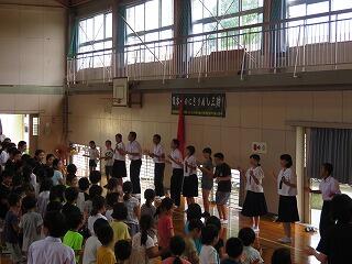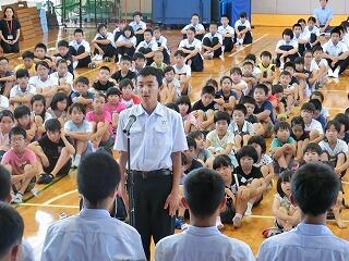 校長先生の話では、各学年を漢字一文字で表し、1学期頑張っていた事や成長した事をほめて頂きました。