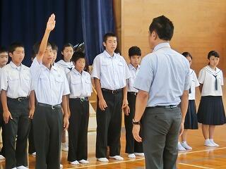 明日から県内各地で実施される県中学校総合体育大会の選手推戴式がありました。