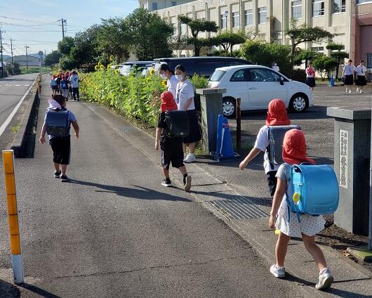 新型コロナウイルス感染拡大防止のため、校内放送で1学期終業式を行いました。4年、6年、8年生の代表児童生徒が1学期を振り返って作文を発表しました。その後、8月から産休に入る坂本先生がお別れの挨拶をしました。