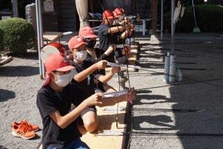 そこで、私達は、調べ学習であったように、昔ながらの方法で稲を干して乾燥させることにしました。