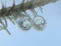 週末は理科の先生の家に連れて行かれた、メダカのたまご。