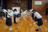 日章学園トータルエステティック科の先生、生徒を講師に招き、9年生を対象に礼法指導をしていただきました。