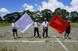 団員がワクワクしながら見守る中、団長・副団長・リーダーによる障害物走で、団色が決定し、団旗が授与されました。