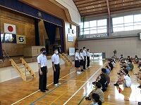 天候が心配されましたが、晴天の下、運動場で結団式が行われました。