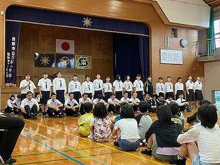 学校を代表して9年生の藤田爽嗣さんが、「初めて聞いたジャズだが、身体を動かしたくなるようなリズムで楽しかった。いつも歌う校歌でもリズムや伴奏が変わることで、その変化を楽しめた。受験勉強の合間にジャズを聴いてみたい。」とお礼の言葉を述べました。