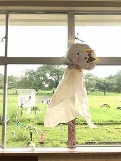 さて、校舎内を歩いていると、1年生教室に何やら巨大なものが窓にぶら下がっているではありませんか。それは、「てるてる坊主」。