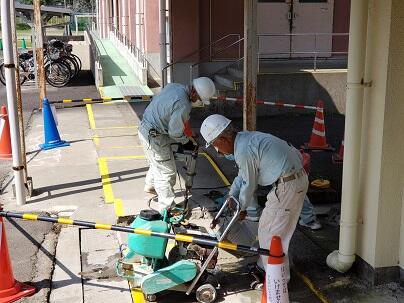 以前、つまづいたりしないように事務室の先生が補修しているところを紹介