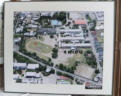 7月4日に撮影された航空写真が完成し、パネルになって学校へ贈られました。ほぼ、イラスト通りに出来上がっていました。(現在は、校長室に保管してあります)。