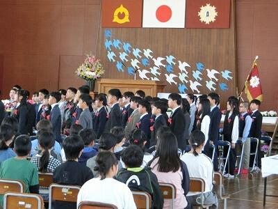 栽培委員会の6年生2名が参加し、花の苗を受け取り感謝の言葉を述べました。