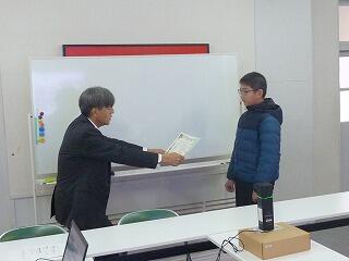 11月5日に税に関する作品表彰式が校長室で行われました。