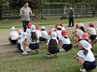 スポーツ地域活性事業として29日に4年生を対象にラグビー教室を行いました。講師は菊谷崇様です。菊谷崇様は地域の課題解決などを手伝ってもらう「副業型地域活性化企業人」として町より委嘱されている元ラグビー日本代表の方です。