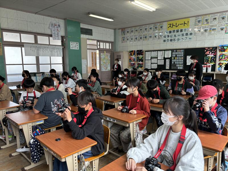 内容は、①宮崎キヤノンについて ②カメラの使い方について ③撮りたい写真をイメージしよう! ④いい写真を撮るコツについて ⑤写真を撮りに行ってみよう! ⑥お気に入りの1枚を選ぼう! ⑦撮影したものを共有しよう このような流れで学習していました。