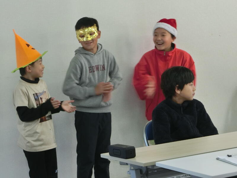 3年生:宝探しゲーム(6年生各クラスに文字を書いた紙を隠す)