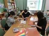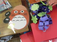 10月19日(火)に図書ボランティアの方が3名、図書室を楽しくする装飾物の製作をしてくださいました。