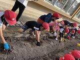 2年生の生活科で、観察を続け育ててきたさつまいもが、収穫の時期を迎えました。花壇で育てたので、成長はどんなかなと心配していましたが、子どもたちが掘り出すのが苦労するほど、よく実っていました。形は不揃いでしたが、次々に姿を現すさつまいもに、歓声があがっていました。仲良く分けて持ち帰りました。おいしく召し上がってください。