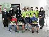 11月26日(金)にJAアグリシードの皆さんに来校していただいて、花の苗の贈呈式を行いました。環境美化委員会の児童代表4名が、花の苗を受け取り、お礼の言葉を述べました。
