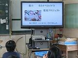 2月3日の全校集会で、校長先生が「東小タカナベカイドウ栽培プロジェクト」の話をしました。各教室の大型テレビに写真を写しながら子どもたちは話を聞きました。