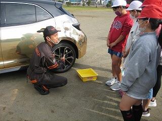 座学では、自動車の生産に係る工夫や取組等を講話いただき、運動場では、車イスが利用できる福祉自動車の体験や自動運転のできる車の試乗も行いました。また、ウン百万円もするスーパーカーも登場しました。